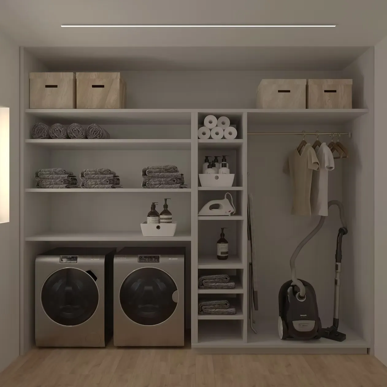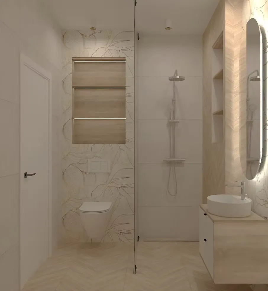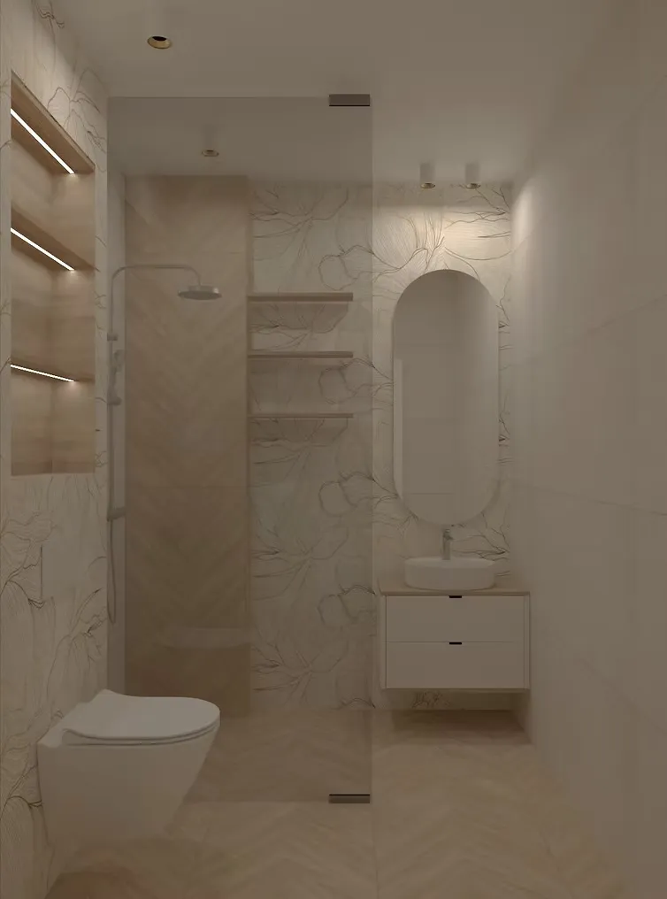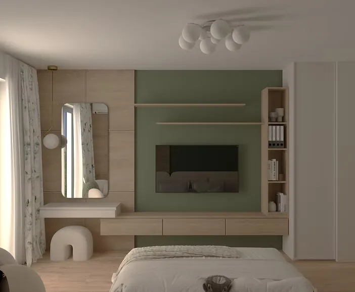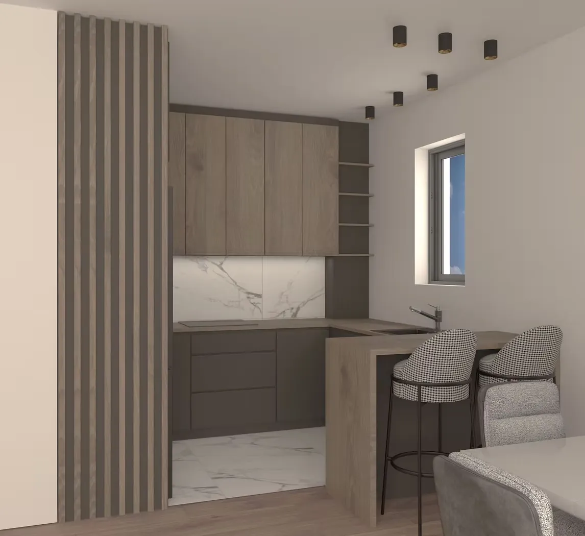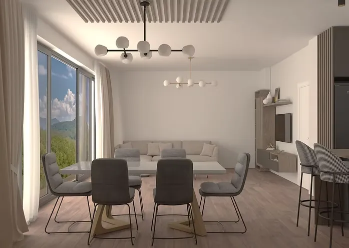 Дизайнът използва неутрални цветове, естествени материали и внимателно подбрани акценти, за да създаде усещане за хармония. Пространствата са светли и просторни, с големи прозорци, които пропускат естествена светлина.